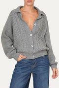 Maglia POLO con bottoni ricamata misto cashmere - Grigio