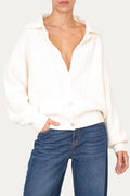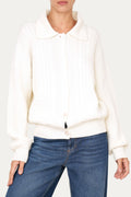 Maglia POLO con bottoni ricamata misto cashmere - Panna