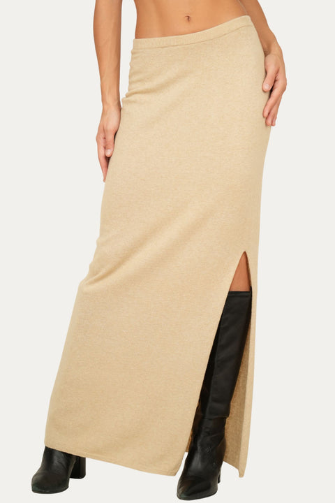 Gonna lunga con spacco misto cashmere - Grano
