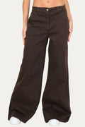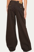 Pantalone palazzo largo GRACE in cotone gabardina - Moro