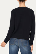 Dettagli: girocollo, chiusura frontale con bottoni in madreperla, maniche lunghe, lavorazione a coste