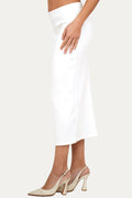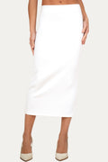 Dettagli: vita regolare con fascia liscia, lunghezza midi, linea pulita senza tasche né cuciture a vista
