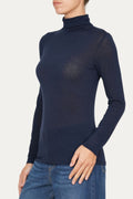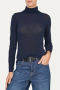Un capo essenziale ma mai banale. Questa maglia dolcevita in misto cashmere in blu, profondo e versatile, avvolge il corpo con una sensazione di calore e comfort mantenendo una linea semplice e pulita. Il collo alto aggiunge un tocco di eleganza e protegge dal freddo, mentre la vestibilità dritta la rende perfetta sia come sotto giacca che da indossare sotto maglioni e capispalla nelle giornate più fredde.