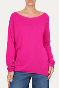 Questa maglia dallo scollo a barca fucsia, morbida e avvolgente, è pensata per chi cerca comfort e femminilità in un unico capo. La linea leggermente più lunga sul retro e più corta davanti conferisce movimento e modernità, mentre la vestibilità morbida leggermente over non aderisce al corpo, regalando libertà di indosso e stile rilassato.