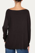 Dettagli: scollo a barca, maniche lunghe, lunghezza leggermente asimmetrica con dietro più lungo