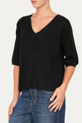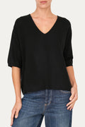 Maglia a scatola manica 3/4 misto cashmere - Nero