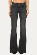 Questo jeans a zampa è senza dubbio un equilibrio perfetto tra stile e comfort. La vita medio-bassa e la linea svasata slanciano la silhouette, creando un equilibrio perfetto tra eleganza e disinvoltura con un effetto allungante e raffinato. Il denim nero gioca con la luce, rivelando riflessi morbidi e naturali che donano al tessuto un aspetto ricercato e contemporaneo. Il tessuto leggermente stretch accompagna i movimenti con naturalezza, mantenendo una vestibilità femminile e armoniosa.