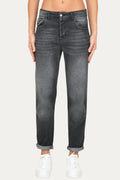 Questo boyfriend nel lavaggio denim nero, colore che da carattere al jeans, è un capo pratico e versatile. La tela ferma crea uno stile rilassato ma curato nei dettagli.