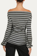 Maglia in viscosa con scollo a barca e maniche bombate con polsino stretto, per un tocco femminile e originale.