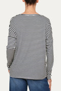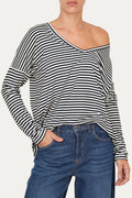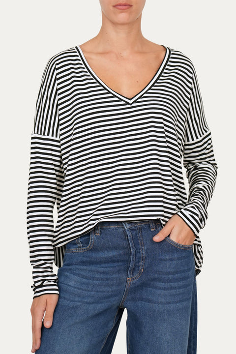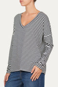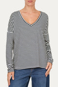 Un classico intramontabile: la variante nera è essenziale e versatile, capace di adattarsi a qualsiasi look. Le righe donano movimento e spezzano la monotonia del total black, mentre il tessuto in viscosa assicura morbidezza e comfort. Lo scollo a V slancia la figura e la vestibilità over garantisce uno stile rilassato ma curato.