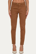 In un raffinato tessuto di cotone gabardina, questo pantalone chino in cammello, nuance calda e neutra, unisce lo stile classico al comfort moderno. La linea pulita ed essenziale valorizza la silhouette senza costringere, mentre la leggera percentuale di elastan assicura libertà di movimento per tutta la giornata. Un capo versatile e curato nei dettagli, perfetto per outfit eleganti ma pratici, ideali dall’ufficio al tempo libero.