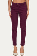 In un raffinato tessuto di cotone gabardina nella versione vino, profondo e sofisticato, questo pantalone chino unisce lo stile classico al comfort moderno. La linea pulita ed essenziale valorizza la silhouette senza costringere, mentre la leggera percentuale di elastan assicura libertà di movimento per tutta la giornata. Un capo versatile e curato nei dettagli, perfetto per outfit eleganti ma pratici, ideali dall’ufficio al tempo libero.