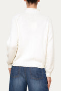 Questo maglione in maglia rasata con trecce laterali versione panna è un capo che da luce ad ogni outfit. Ideale per chi ama coniugare comfort ed eleganza. Il collo leggermente alto e le linee essenziali esaltano la semplicità del design, mentre i dettagli a treccia lungo i lati donano un tocco di carattere discreto e femminile. Realizzato in una miscela pregiata di lana e cashmere, arricchita da viscosa per garantire morbidezza, resistenza.