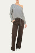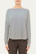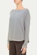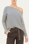 Maglia a righe Kansas con scollo a barca, da indossare sia regolarmente che con una spalla scesa per un look più sensuale e casual.