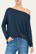 Maglia scollo barca spalla scesa Viscosa - Blu Notte