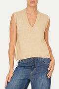 Nel colore grano, neutro e tenue, questo gilet smanicato a costine in misto cashmere è un capo versatile e raffinato, perfetto per le stagioni intermedie e per i look a strati. La lavorazione a maglia sottolinea la morbidezza e il comfort del tessuto. Il taglio leggermente corto con scollo a V dona una linea essenziale che valorizza la figura con naturalezza, rendendo il capo adatto a molteplici abbinamenti: portato da solo per uno stile minimal e moderno, oppure sopra camicie e bluse per un tocco sofisticato e casual chic.