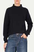 Questo maglione in maglia rasata con trecce laterali nell'intramontabile colore navy è un capo versatile e raffinato, ideale per chi ama coniugare comfort ed eleganza. Il collo leggermente alto e le linee essenziali esaltano la semplicità del design, mentre i dettagli a treccia lungo i lati donano un tocco di carattere discreto e femminile. Realizzato in una miscela pregiata di lana e cashmere, arricchita da viscosa per garantire morbidezza, resistenza e una piacevole sensazione sulla pelle.